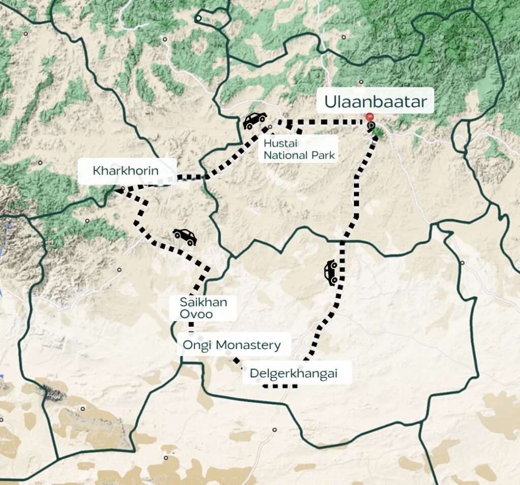Travel to the Orkhon Valley, considered as the cradle of Mongolian civilization and visit Kharakhorum, the site of 13th century Mongolian capital city;